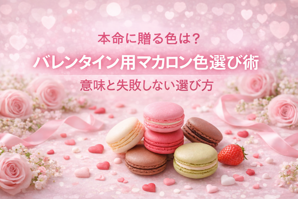 バレンタインに本命の人へマカロンを贈りたいけれど、どの色を選べばいいのか迷ってしまうことはありませんか。 マカロンはカラフルでかわいらしく、見た目から気持ちが伝わりやすいお菓子です。 だからこそ、色選びを間違えると想いがうまく伝わらないこ... -