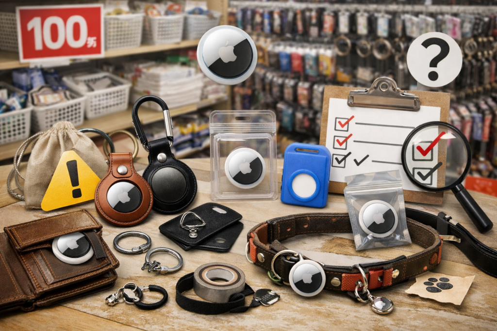 100均で探すときは、AirTag専用ケースにこだわらず、形が近い代用品を選ぶのがコツです。 ここでは、代用しやすいタイプを用途ごとに整理します。